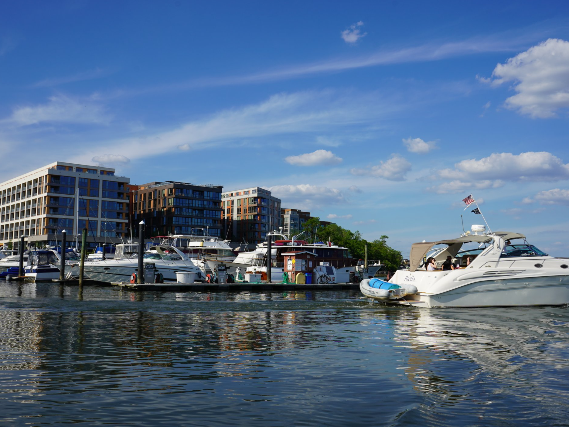 Perfectly situated at the confluence of the Potomac and Anacostia Rivers, the contemporary design with live green walls, tranquil open-air patio and fire pits, compliment the picturesque and panoramic views.