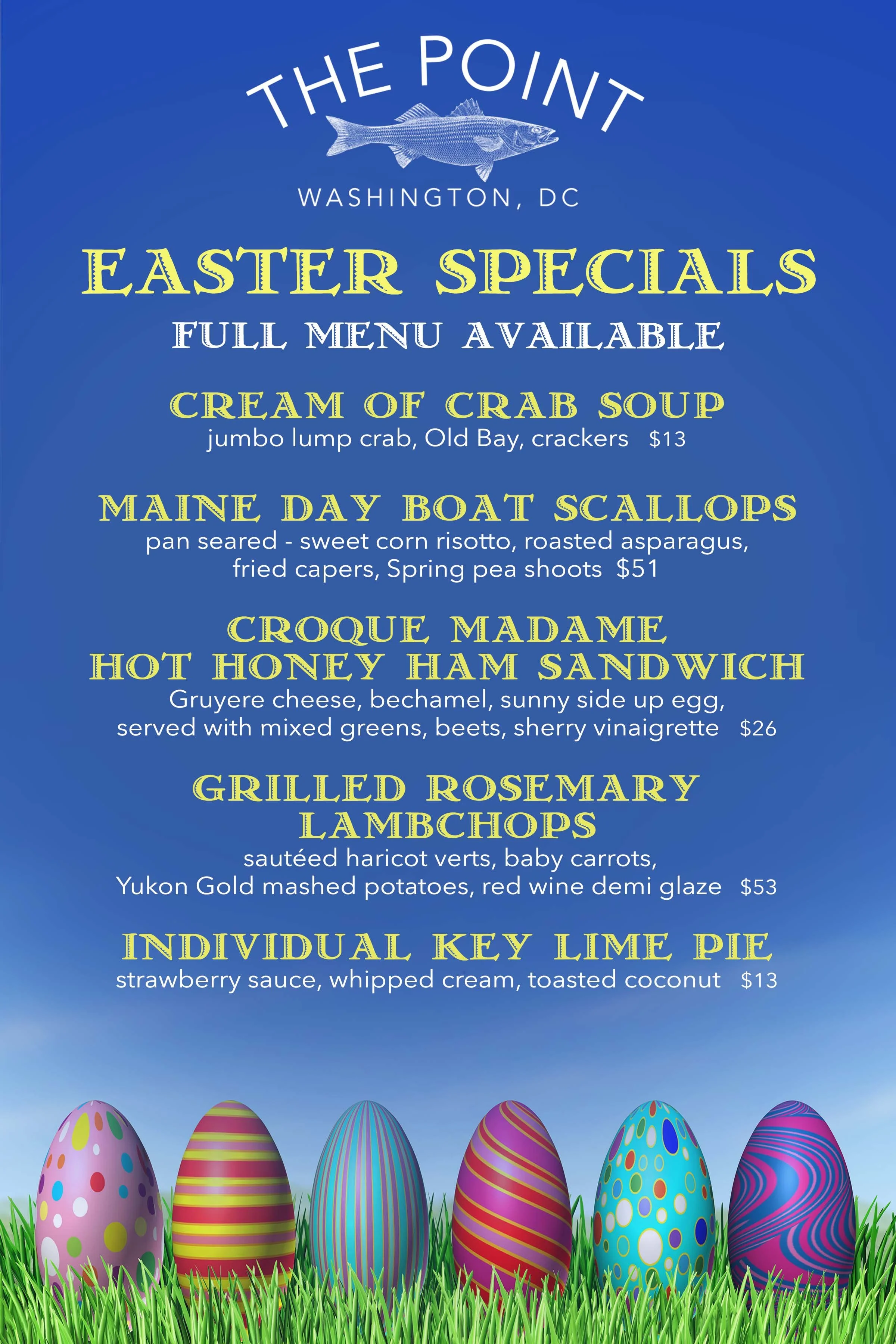 Celebrate Easter at The Point DC with a festive brunch experience featuring our full brunch menu alongside a selection of seasonal chef specials. Gather with friends and family and enjoy elevated spring flavors, fresh ingredients, and classic favorites with a signature twist.